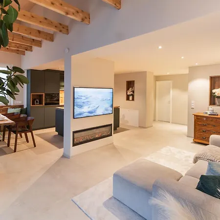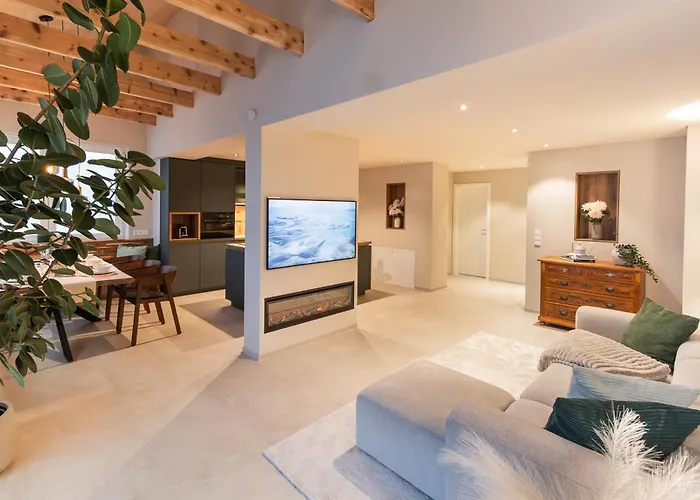 The Fussach accommodation comprises a seating area, including different facilities, like a TV set.
